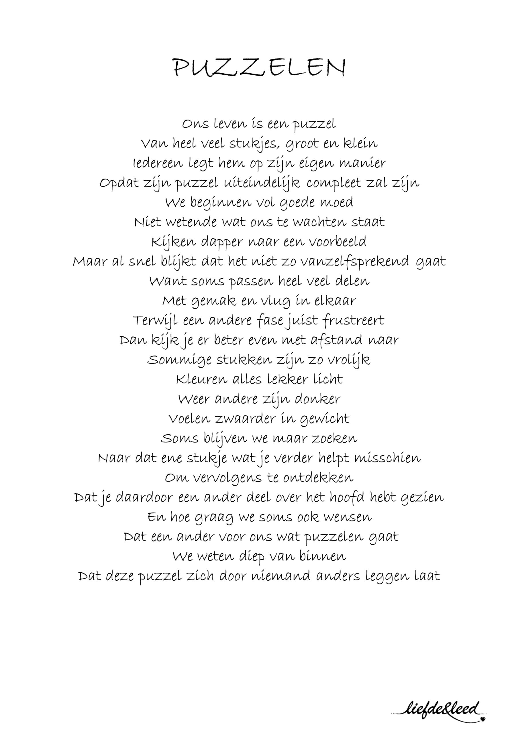 Gedicht Puzzelen.